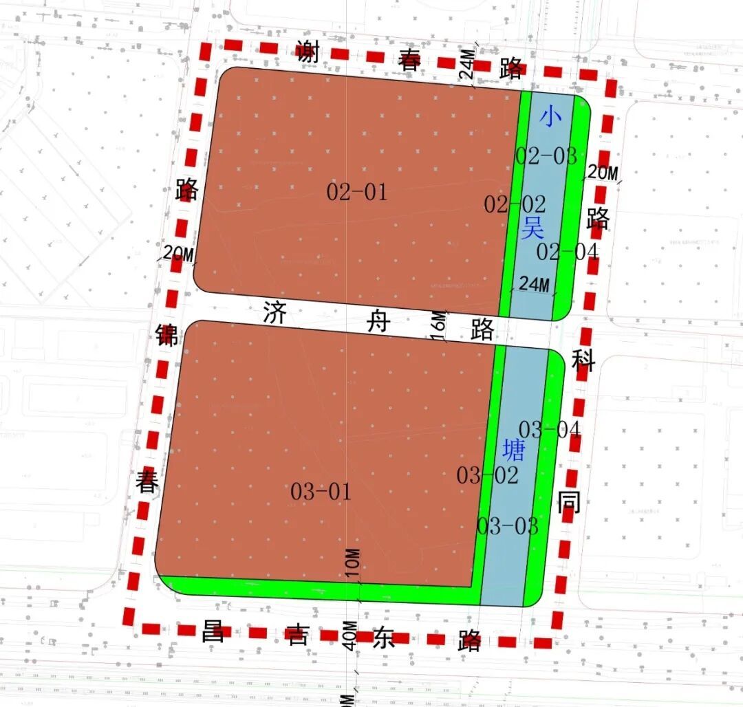 02-01地块建筑高度由30米调整为40米,03-01地块建筑高度由30米调整为50米。