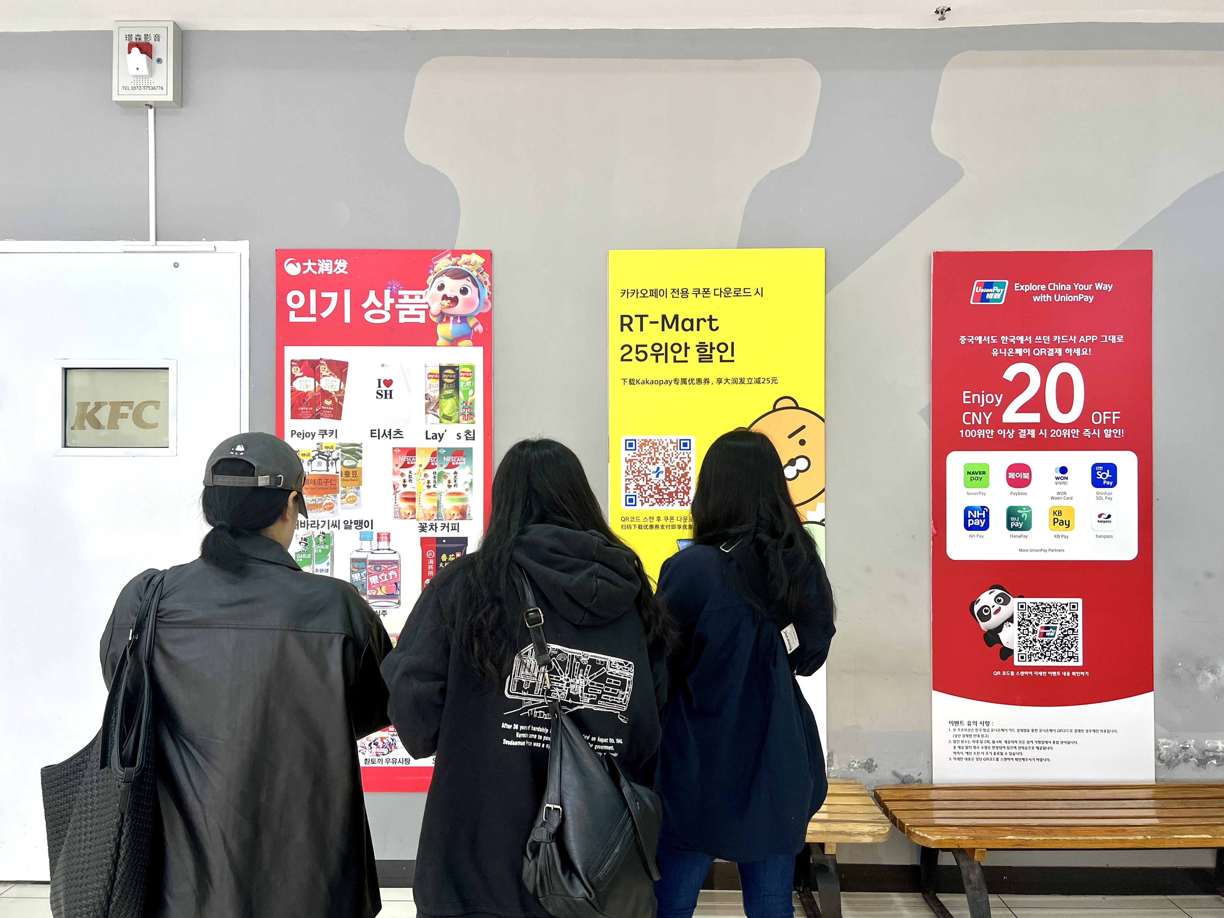 商品陈列上,开辟韩国游客专属区域,将郑容和同款凤梨酥等热销品集中摆放,奥利奥礼盒等女性偏好商品置于黄金视线高度,酒区设置专属展陈台并提供免费试喝服务;语言与支付障碍的破除更让体验感升级,店内动线指示、商品说明、服务提示均配备中韩双语标识,循环播放双语导览;开设韩国游客专用结账通道,支持Kakao Pay、UnionPay等常用支付方式,更推出Kakao Pay支付满300减25元的专属优惠。