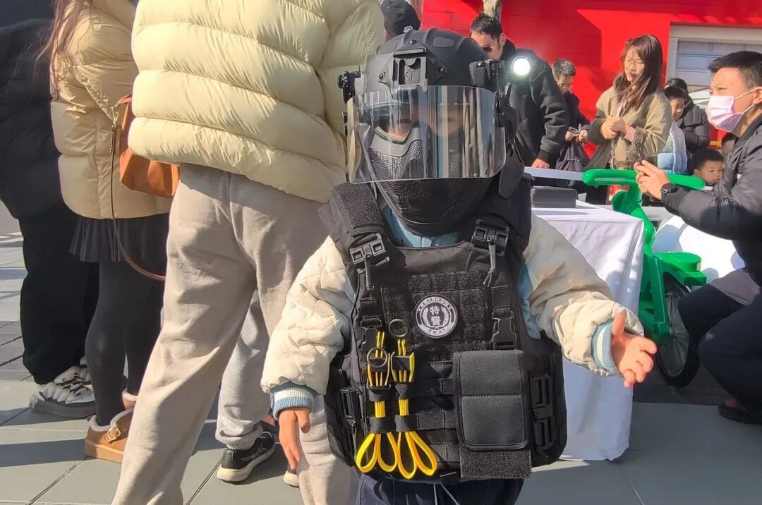 现场,警用装备展示与穿戴体验区备受孩子们的喜爱,在民警的指导和保护下,萌娃们穿上迷你制服,亲身体验警用器械,圆了一个“小小警察”梦。