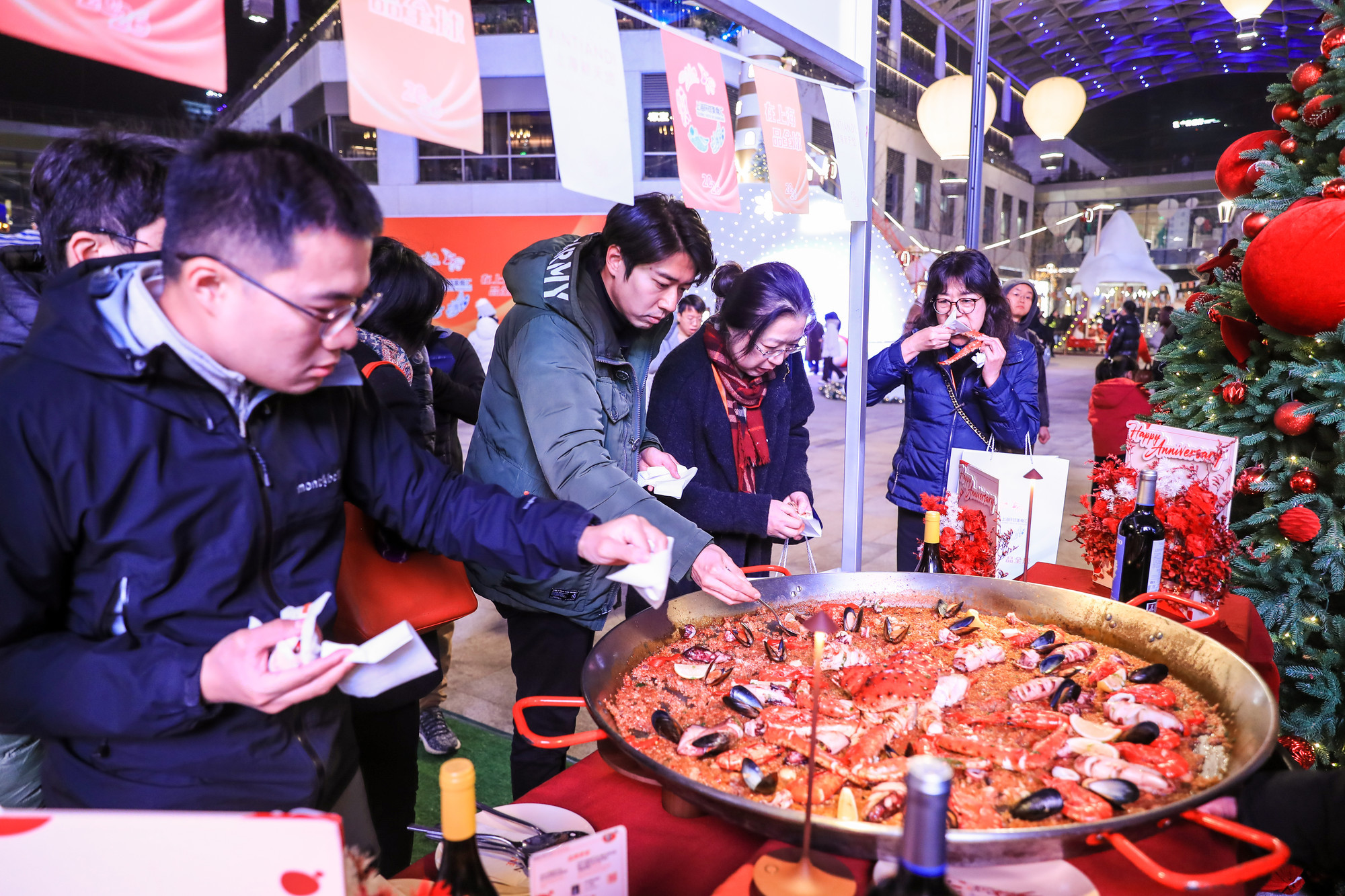 现场烹制可供多人分享的“巨型西班牙海鲜饭”