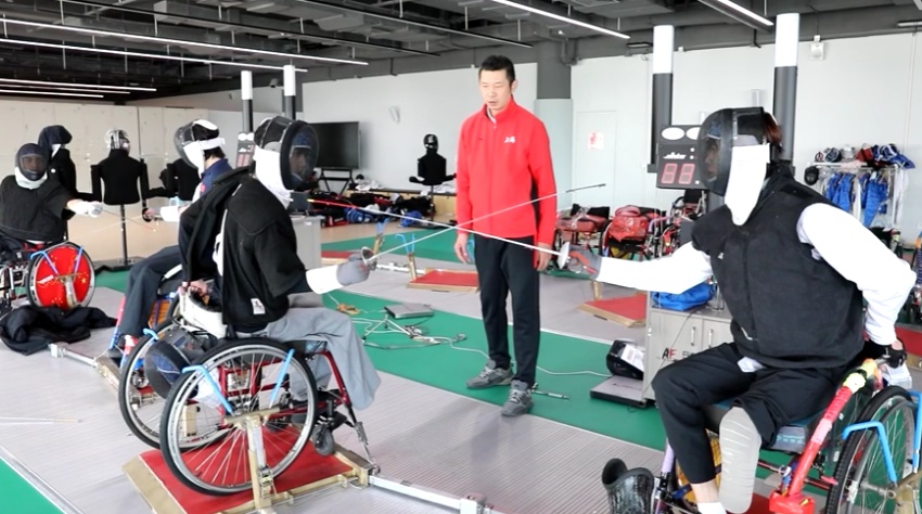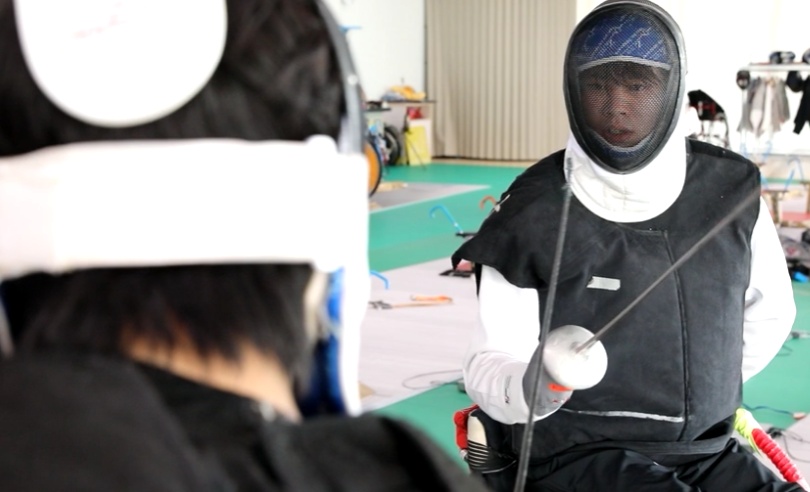 位于崇明陈家镇的残疾人体育训练中心内,朱子劼与队友正专注进行日常训练。轮椅击剑比赛中,运动员的轮椅固定于轨道,胜负取决于上半身的核心力量与刺击技术。每一次简单的直刺进攻与防守格挡,都需经过千百次重复锤炼。训练间隙,朱子劼摘下头盔,汗水已浸湿面庞。