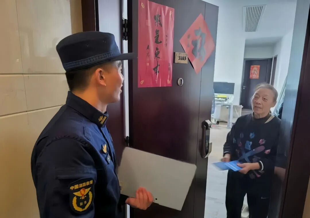 连日来,消防宣传人员还开展了“敲门守护”行动,重点走访独居老人、高龄家庭等特殊群体。消防员上门排查燃气管道、电器线路等隐患,发放“三清三关”主题三折页,以图文并茂的形式详解安全要点,并张贴印有“平安”字样的特制门联,既传递美好祝愿,又时刻提醒居民绷紧安全弦。