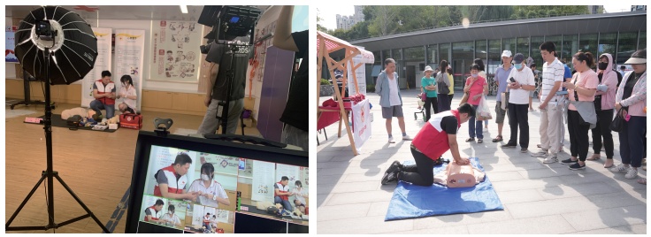 红十字“救在身边”救护师资志愿服务队制定“全域覆盖、精准施教”培训计划,每年为机关、企业、学校、社区、楼宇等开展线下急救培训一万余人次,通过直播、录播、线上公众号、视频号、一网通办(红十字急救培训专区)、“救在身边 守护生命”微信小程序等平台普及急救知识一万余人次,广泛涉及各领域行业,各年龄层次人群。