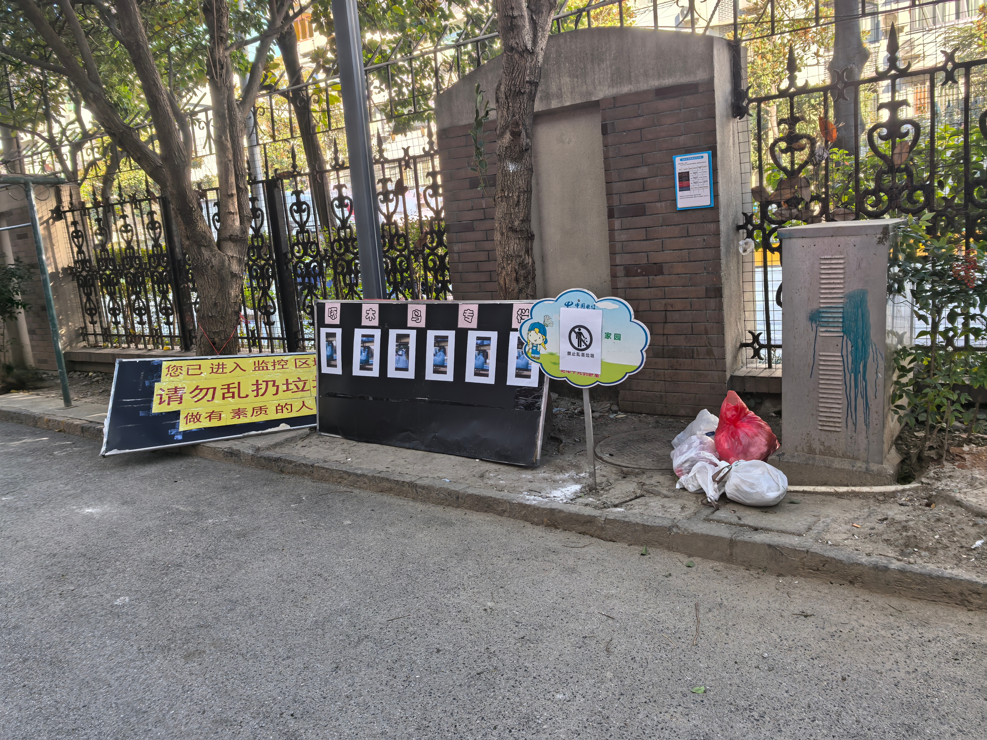 首先是“共治”聚合力,居民区牵头,联合镇管理办、网格工作站、业委会、物业公司等多方力量,共同出谋划策、统一行动。除了增加日常巡逻与即时清理频次,小区在关键位置加装了监控摄像头。一块特别的“曝光台”黑板被立在路口,监控拍下的不文明行为照片(人脸经模糊处理)被定期张贴公示。同时,楼组长在楼组微信群内持续进行“温馨提示”,营造邻里监督、共同劝导向善的氛围。
