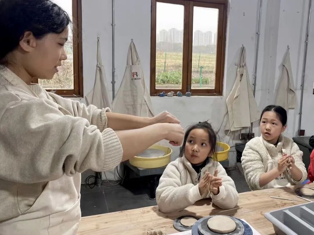 在村里的支持下,高艺峰和几位艺术家好友从改造闲置空间着手。村里的旧仓库最先被活化利用,在完好保留乡村风貌与空间肌理的基础上,改造为共享创作中心,并配备柴窑、坑窑、乐烧等烧制方式,形成了不同于城市工作室的氛围。不仅吸引了游客、爱好者、专业人士前来体验与创作,也成为了上海高校、中小学开展美育与陶艺教学的实践基地。