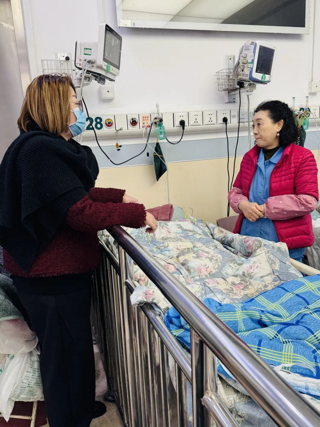 潘阿姨立马警觉起来,立即敲门,却始终无人应答。她尝试用备用钥匙开门,却发现门从内部反锁无法打开。潘阿姨与王阿姨当邻居多年,她知道王阿姨常年独居,且患有糖尿病、高血压等多种慢性疾病。担心王阿姨有可能在屋里出了事,她一刻不敢耽搁就来到居委会,将情况告知板块长。 接到求助后,居委会工作人员立即赶到现场。到达楼栋后,工作人员一边尝试联系王阿姨的紧急联系人,一边反复尝试用钥匙开锁,均未成功。考虑到老人病情不明,为避免延误最佳救治时期,工作人员立即拨打了110报警电话和120急救电话。 居委会工作人员上门查看情况 几分钟后,辖区派出所民警赶到现场,打开房门后,发现王阿姨倒在客厅地板上,意识模糊、面色苍白。民警立即疏散无关人员,维持现场秩序,为后续救治腾出空间。居委会工作人员也立马整理好老人的病历资料,方便向随后赶到的急救人员详细说明老人的身体状况。 在多方紧密配合下,王阿姨被顺利抬上救护车,送往医院进行抢救,居委会工作人员也随同前往医院。经诊断,王阿姨因脑干出血导致晕倒,所幸发现及时、救治得当,目前已脱离生命危险。 “这次事件的成功处置,得益于热心邻居的细心观察、社区快速响应机制的有效运行,以及与公安、医疗等部门的高效联动。”居委会工作人员表示:“近几年,居委会持续推进‘邻里守望’行动,重点关注社区里10多位像王阿姨这样的独居高龄老人,通过工作人员和楼栋邻居一一结对,时刻关注老人的生活,确保问题能及时发现、快速解决。我们的目标是让社区成为居民心中最安心、最温暖的港湾。” 居委会工作人员与老人侄子在医院一起陪同照护 “作为一个老龄社区,这个行动已经进行了好几年了。我们结合送餐服务,让结对邻居通过查看餐食领取情况,掌握老人的动态。工作人员也会按照与老人约定的固定时间每月上门走访,询问他们的需求,遇到需要采购物品、办理琐事的情况,就一并帮忙处理好。”说起“邻里守望”行动,工作人员介绍说:“有时候在上门走访时,路过老人所在的楼栋,也会敲敲门,问问情况。我们的手机里都留着老人们居家养老服务人员的电话,方便有情况及时沟通。对我们来说,每一位老人,都是我们的‘宝贝’。” 1月8日上午,工作人员再次来到医院看望王阿姨,向主治医生了解老人治疗情况,同时向护工了解老人照料情况,考虑到老人侄子工作繁忙,她向主治医生留下了自己的手机号,便于随时保持联系,时刻关注老人后续治疗情况。 居委会工作人员向主治医生及护工了解老人情况 供稿:朴锦 编辑:方佳璐