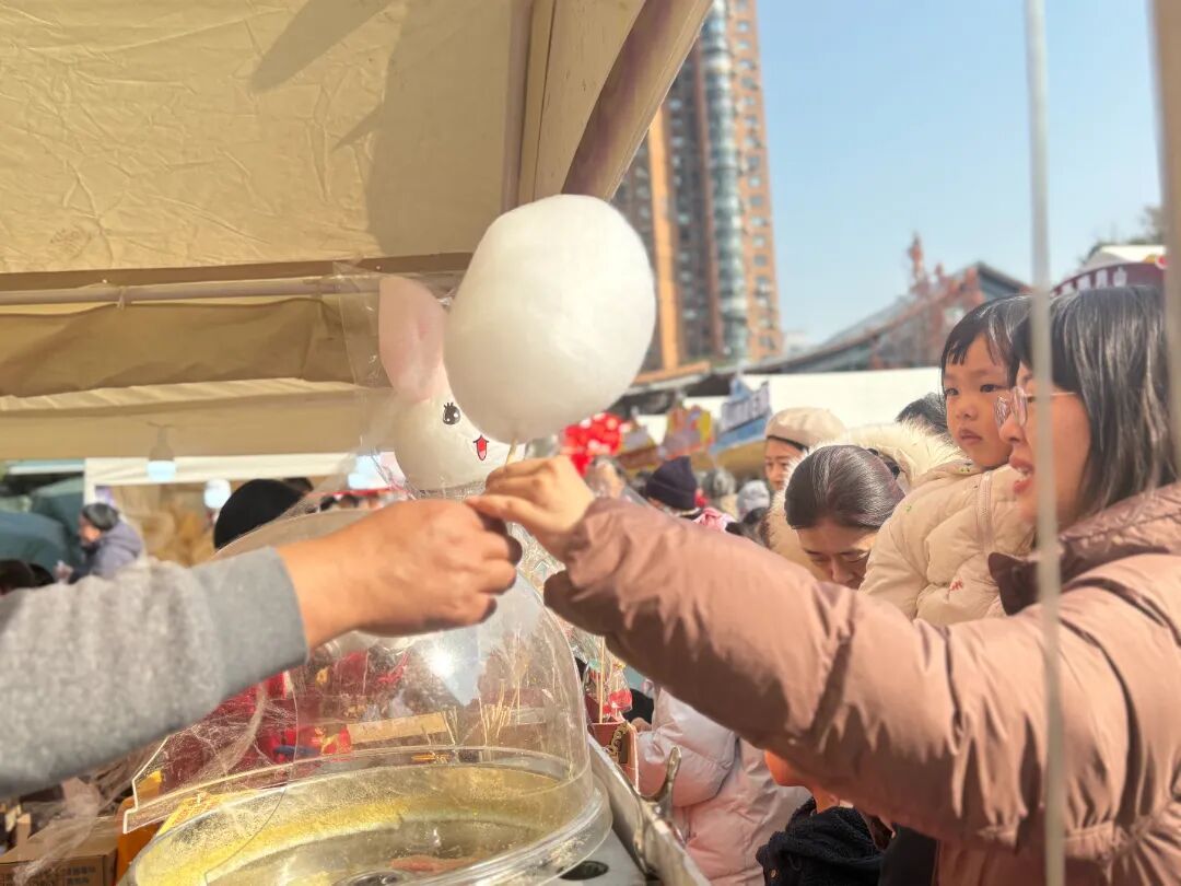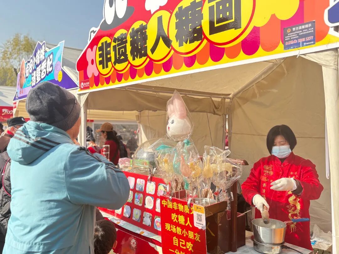 市集上的非遗文化、新春福饰等特色摊位,也是一大亮点。