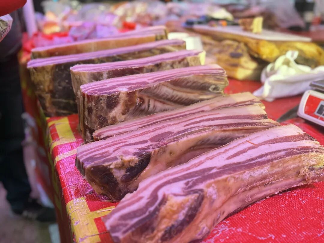 据摊主介绍,他们带来的都是低盐火腿和五花肉,“我们用的是矿物盐,咸淡适中,符合现代人健康饮食的需求。”