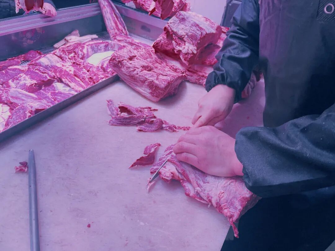 “鲜”,是这里所有摊位共同的金字招牌。每日凌晨,从内蒙古、山东、安徽等地直供的牛羊肉便准时送达。清晨五六点,摊主们早已开始忙碌,在营业前将整肉分切、归类、陈列妥当,以最佳状态迎接早市的客流高峰。方寸之间,一个摊位一天便能接待上百位顾客,日销数百斤肉品是常态。“最受欢迎的就是雪花牛肉,家里小孩的辅食、老人炖汤,都指定要这里的肉。”一位每周固定采购的顾客说道。