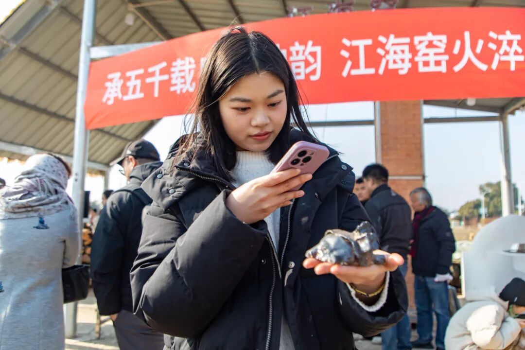 “开窑啦!”随着一声轻喝,组成江海村“江海窑”窑门的红砖,被一块块抽去,一批带着窑温的陶瓷作品赫然展现在游人的面前。现场的赞叹声此起彼伏,热闹非凡。