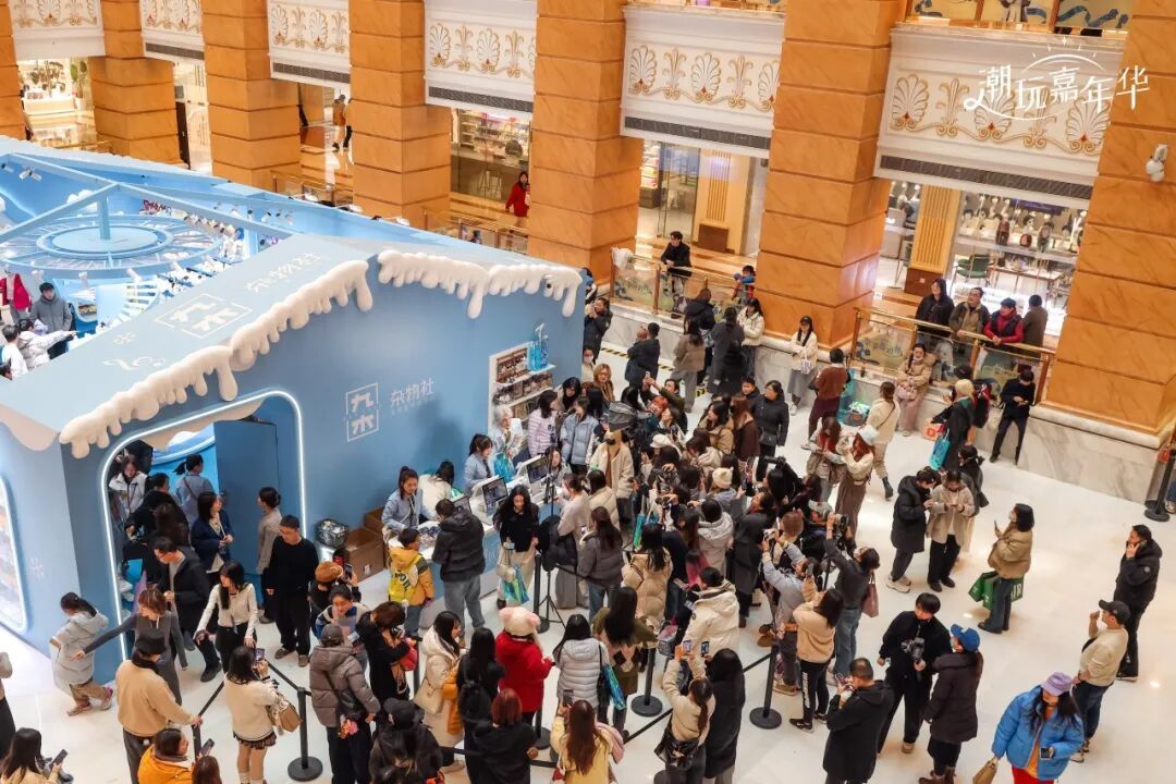 同日,晨光旗下九木杂物社上海旗舰店首店以全新形象焕新开业,其打造的“未来雪屋”主题潮玩嘉年华快闪活动同步启幕。快闪空间融合冰雪元素与未来科技感,冬季限定UU TOY等身模型打卡点、“一日店长”角色扮演、可动人偶微缩景观拍摄等环节,吸引了大量年轻消费者与亲子家庭。