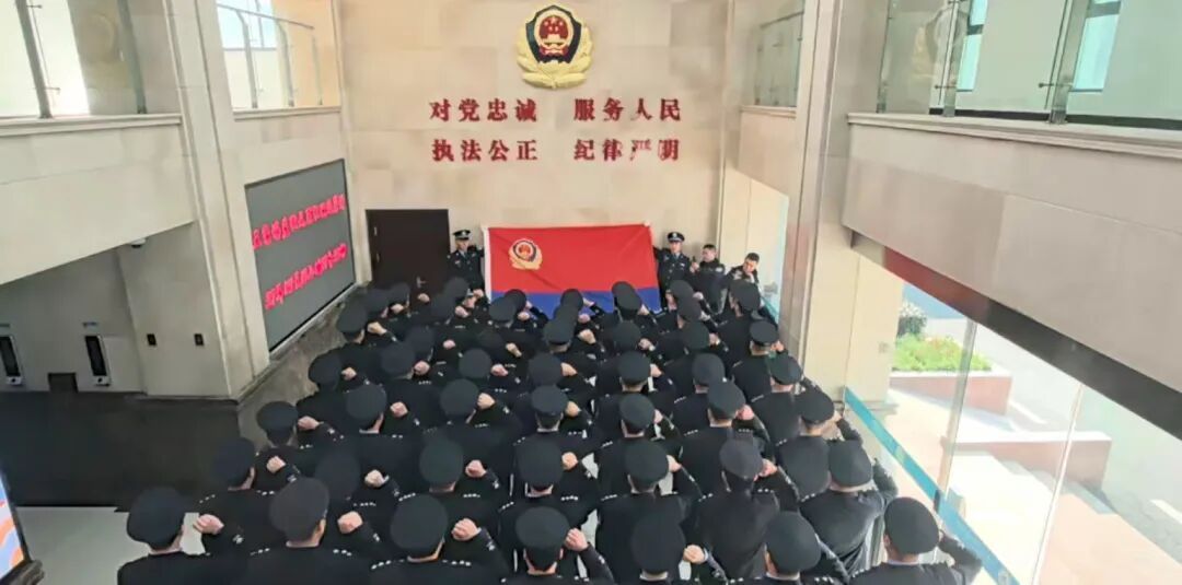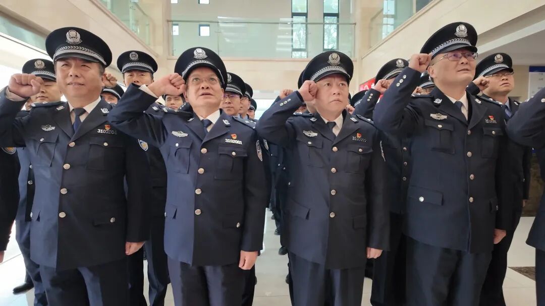 崭新的誓词墙熠熠生辉,上方的警徽与“对党忠诚、服务人民、执法公正、纪律严明”的十六字训词交相辉映。铿锵有力的誓言在一楼大厅回响,这是初心使命的再宣示,更是接续奋斗的再出发。