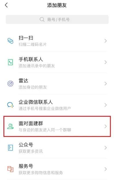 ①点击微信聊天界面右上角的“+”,找到“发起群聊”,进一步点击“面对面建群”;