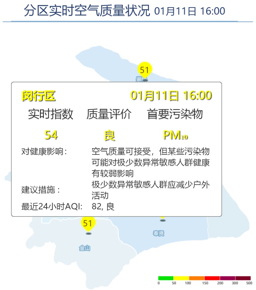 闵行区AQI为54,良,