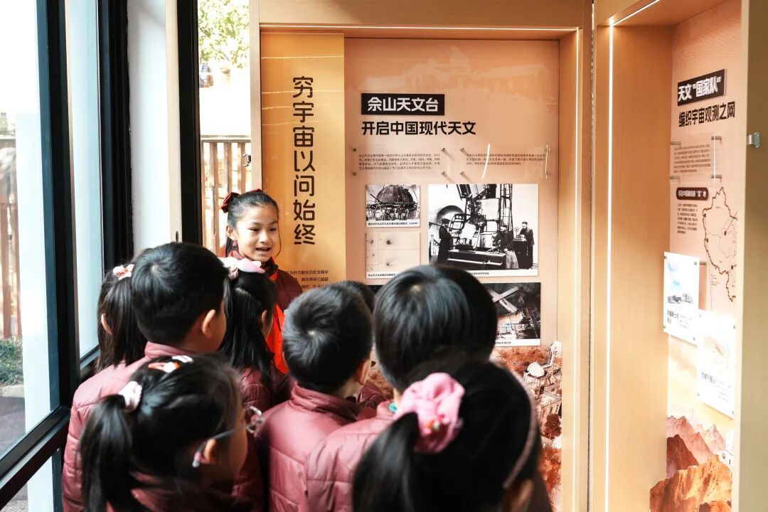 红绸轻落,一方微缩的“星空圣地”静静浮现——上海天文馆陶寺古观象台遗址模型首次走进校园,在新普陀小学东校的“仰望·星盒”微展览中与孩子们相遇。 1月9日,这座“一平米博物馆”在校园内亮相。校内同时启幕“仰望·星盒”中国古今天文台系列微展览,将跨越数千年的天文智慧,悄然融入孩子们的校园日常。 课间十分钟 遇见千年前的“观星台” “这是上海天文馆的陶寺古观象台遗址模型第一次来到学校。”上海天文馆“仰望·星盒”项目负责人、新普陀小学东校科技副校长陈颖介绍,“现在,我们把‘博物馆’搬到了学校,孩子们在课间、午后,随时都能看到、感受到。” “今天的这场活动充满惊喜,就像把博物馆搬进了学校一样。能在学校里学习到这么多天文知识,感觉特别奇妙。”宋祥辰兴奋地说。 这场展览的意义,远不止于“看”。活动现场,上海天文馆老师的“日时计”科普讲座瞬间点燃好奇。“晷针”“晷面”……这些原本陌生的天文词汇,在生动的演示与互动中变得通俗易懂。 孩子们很快领悟原理,纷纷动手拼装起自己的日晷模型。“变长的时候是早上或晚上,变短的时候就是中午!”一年级的俞柯妍兴奋地分享她的发现。专注的眼神、忙碌的小手,让古老的计时工具在现代的校园里“复活”。 展览墙边,挂满了孩子们亲手制作的星空书签,上面稚嫩的笔迹书写着对宇宙的遐想:“我想成为宇航员,去月球上漫步”“希望能解开黑洞的秘密”“愿宇宙永远璀璨,人类探索不止”…… 馆校深度合作 构建长效育人新场景 更值得关注的是,这场展览不仅是上海天文馆资源的引入,更是学校“以学生为中心”教育理念的生动实践。经过学校的精心组织和系统培训,四位身着红领巾的小小讲解员自信地站在展板前,将跨越千年的古今天文台故事娓娓道来。“时光的脚步一点点迈进,我们来到1899年……”清晰的讲解,引领同学们穿梭于历史长河。 “我不仅准备讲解稿,还上网查了很多资料。”讲解员陈鹿鸣说,备稿的过程让他深深着迷,更从聆听的同学们眼中,看到了对知识的热切渴望。这种“由孩子讲给孩子听”的方式,让知识的传播充满了同伴的共鸣与温度。 此次微展是上海天文馆系统性馆校合作的一次成功探索。“我们正打造‘行走天文馆’项目,把优质的科普资源系列化、课程化,送进校园。”上海天文馆管委会副主任、天文馆展教中心主任李岩松介绍,这是持续融入校园生活的长期计划。 新普陀小学东校党支部书记、校长寿俊梅介绍,学校将以“一平米博物馆”为起点,将其延伸至五年级毕业课程。学生们将化身“小小策展人”,亲手设计并布置属于自己的毕业微展,完成从“参观者”到“创造者”的身份跨越。 记者:张曦 编辑:吴锴