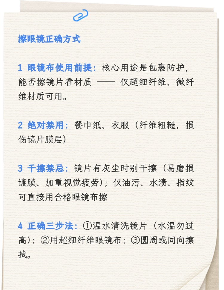 每天用眼镜布擦镜片,几乎是戴镜人的“默认操作”!市市场监管局介绍,眼镜布的核心用途是包裹防护眼镜,至于它是否可以用来擦镜片?很多人可能一直用错了!详见↓
