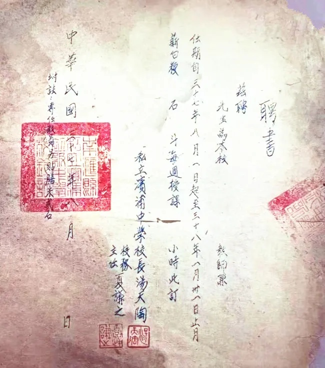 滨浦中学教师聘书