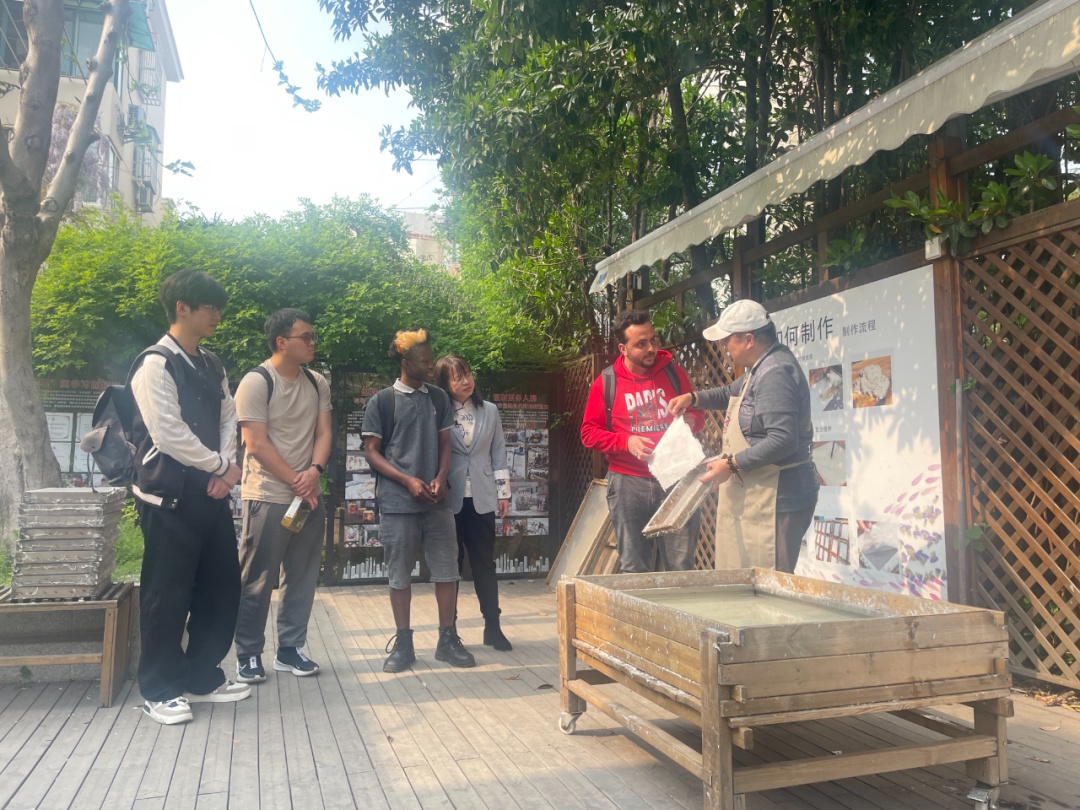 华东理工大学课程的特色在于校地合作,课程基地联动机制将语言课程与实践活动作为有机整体进行系统设计。“当留学生在《专业汉语》课上学完造纸专业术语,下午就能在凌云社区亲手体验古法造纸。”课程相关负责人表示,课程模块衔接古法造纸非遗工坊体验,国际学生组建大学生创新创业团队,建立非遗技艺类项目的数字资源库,结合文字、语音、视频等多媒体手段进行多语种传播,向国际伙伴阐释中国科技创新与传统智慧的融合之道,形成了“课堂认知—基地实践—海外传播”的教学闭环。