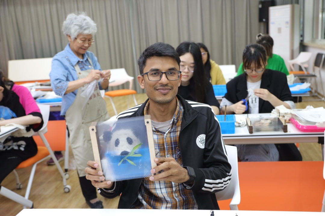 据了解,华东理工大学国际学生文化实践基地于2023年在凌云社区挂牌成立以来,已累计举行各类实践活动50余场,服务和辐射中外青年300余人次。参与者中既有来华攻读学位的国际学生,也包括短期来访的海外群体,如全球首家科创孔子学院的学生代表。在基地内,国际学生围绕古法造纸延展出熊猫纸艺、饾版印刷、书签书本、纸艺台灯等一系列创作,在动手体验中加深对中华优秀传统文化的理解。