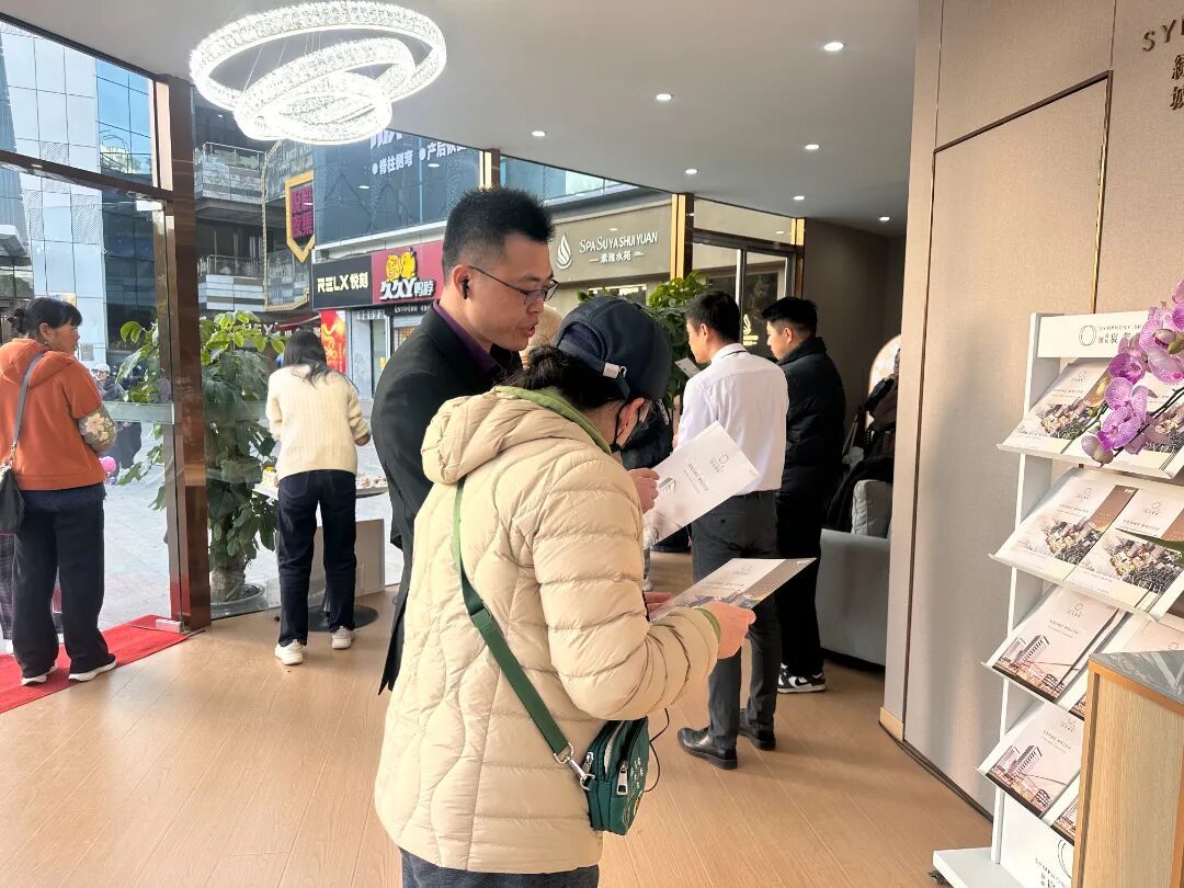 “离地铁这么近,还挨着商场,不管是上班通勤还是日常逛街都方便,特意过来问问叠墅的户型和开盘细节。”市民陈女士说道。现场,还有不少年轻情侣聚焦120平方米高层户型,向置业顾问详细咨询装修标准与智慧社区配置;改善型家庭则更关注叠墅的空间布局与私密性。置业顾问耐心解答,通过户型模型、区域规划图等直观展示,让市民们对项目有了更全面的了解。