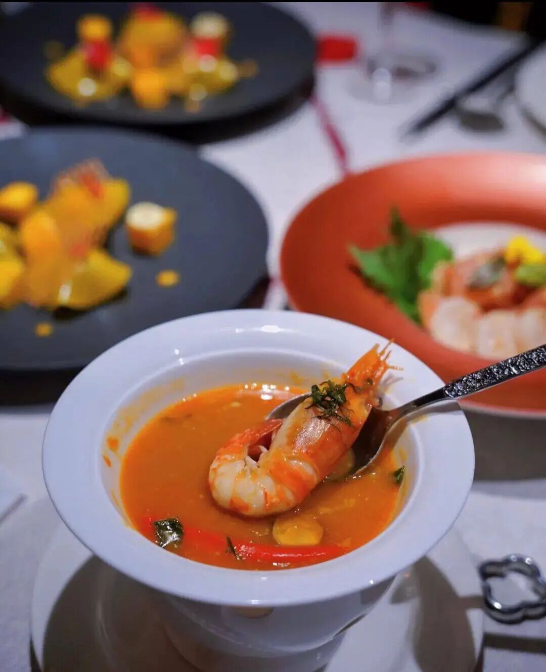 泰珍荟的招牌冬阴功汤,酸辣鲜醇风味正宗,鲜活大虾搭配地道香料慢熬出浓醇汤底,酸得清爽、辣得柔和、鲜得纯粹,一口解锁地道南洋鲜滋味,桌桌必点不踩雷。
