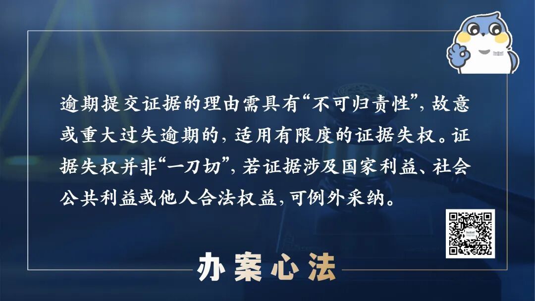 需注意的是,证据失权并非“一刀切”,若证据涉及国家利益、社会公共利益或他人合法权益,可例外采纳,但需对当事人予以训诫、罚款,平衡程序正义与实体正义。