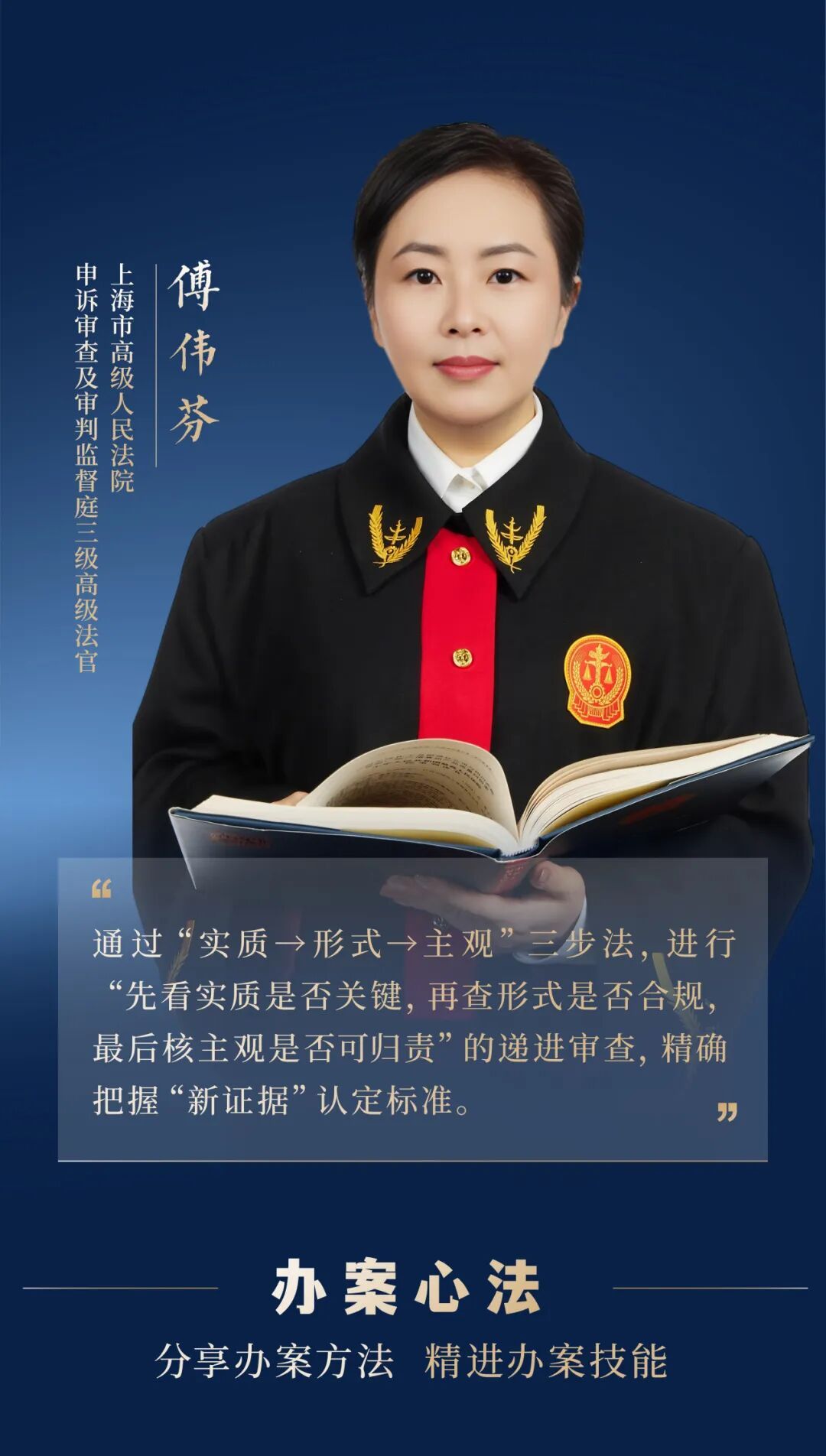 即日起,我们继续推出“办案心法”栏目“上海法院审判业务骨干”特别专题,邀请他们分享办案理念、经验心得,期待你在这里依旧有所感、有所悟、有所获。