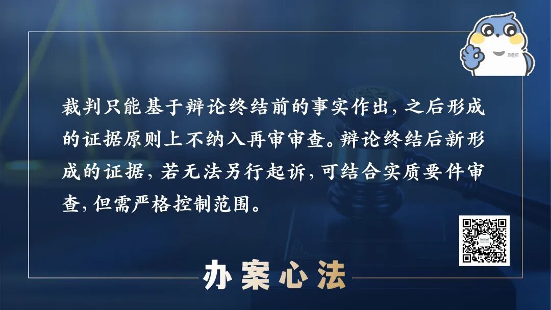 例外情形:辩论终结后新形成的证据,若无法另行起诉(如劳动争议中,用人单位终审后出具的“解除劳动合同原因说明”,劳动者无法就此另行主张权利),可结合实质要件审查,但需严格控制范围。