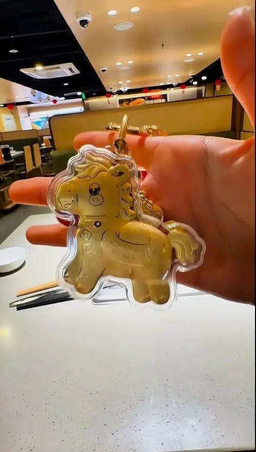1月11日,记者致电上述海底捞门店,工作人员表示,“它不是纯金的,是合成金属材质的。”顾客在订餐时备注相关信息可获得小马挂件,但有数量限制,先到先得。