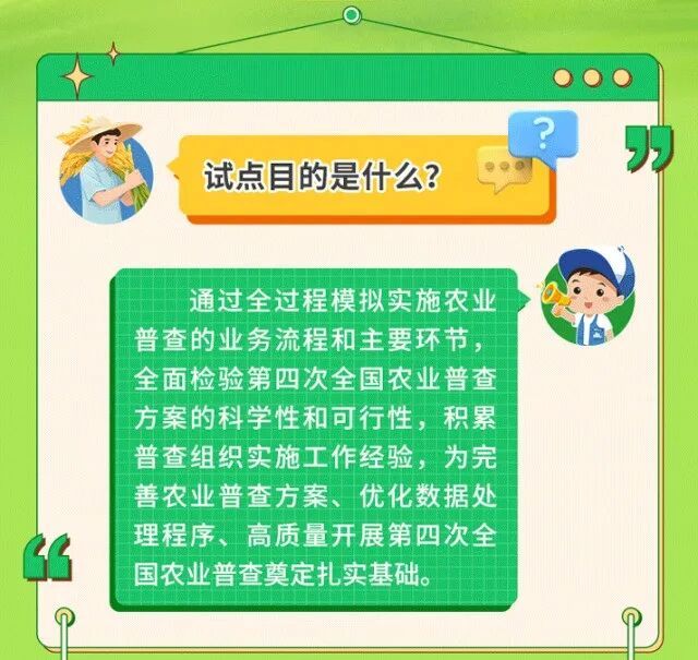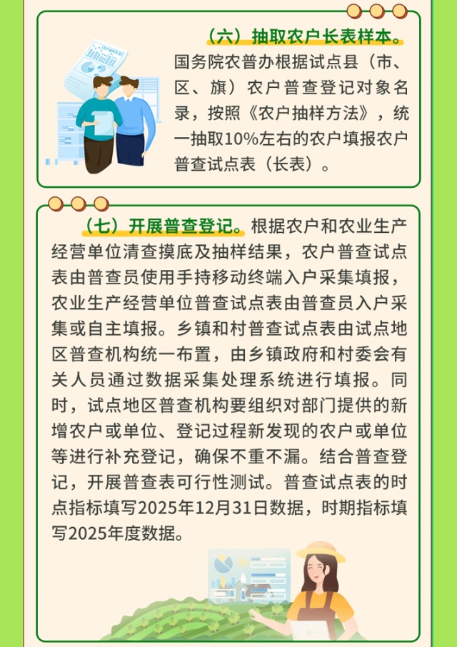 按照《国务院关于开展第四次全国农业普查的通知》(国发〔2025〕9号)要求,为进一步改进和完善农业普查方案,国务院第四次全国农业普查领导小组办公室(以下简称“国务院农普办”)决定开展第四次全国农业普查综合试点工作。