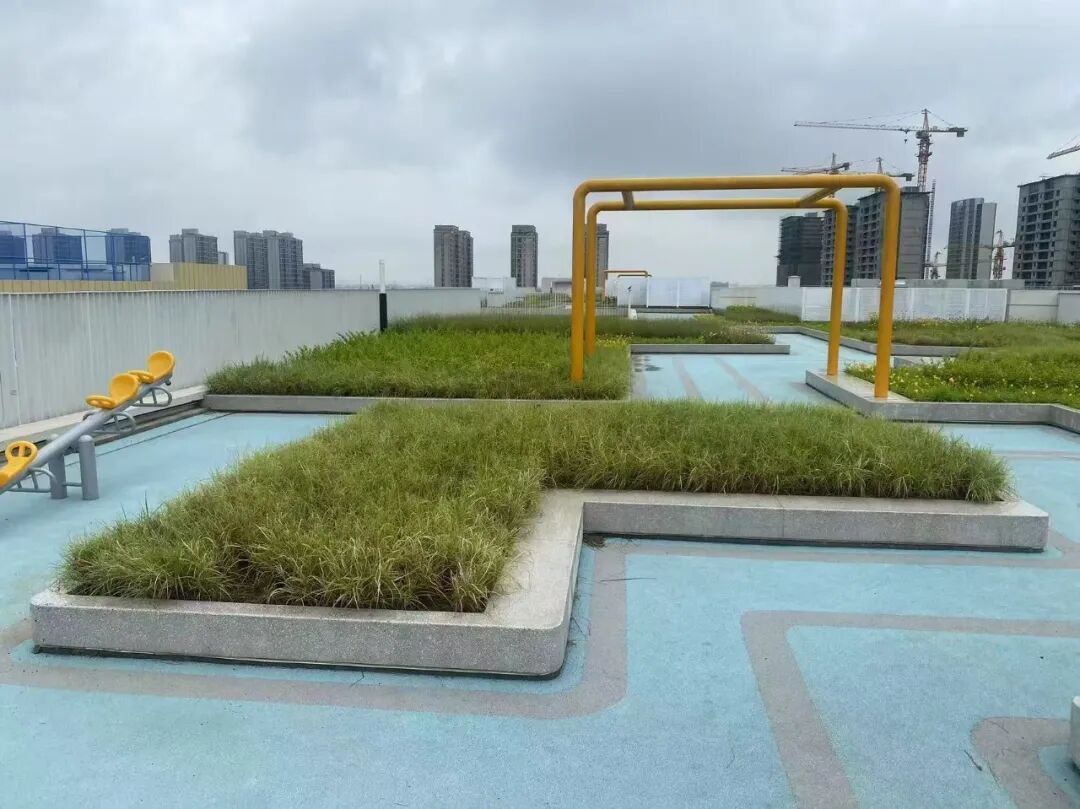 校园里,立体绿化同样“生长”出新空间。在上海实验学校嘉定新城分校,7044平方米屋顶绿化已投入使用。空间设计以观花花境植物和富有野趣的观赏草为主,并配备健身休闲设施。这处立体绿化不仅丰富了学校的生态系统,也给学生们提供了一个亲近自然、舒缓身心的绿色空间。
