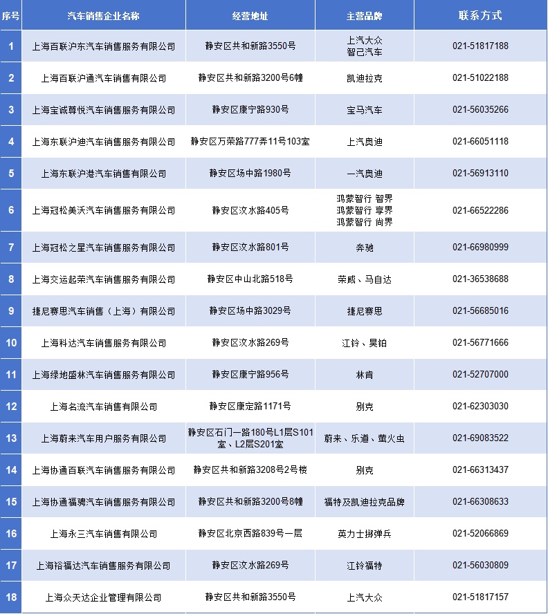 汽车销售企业清单