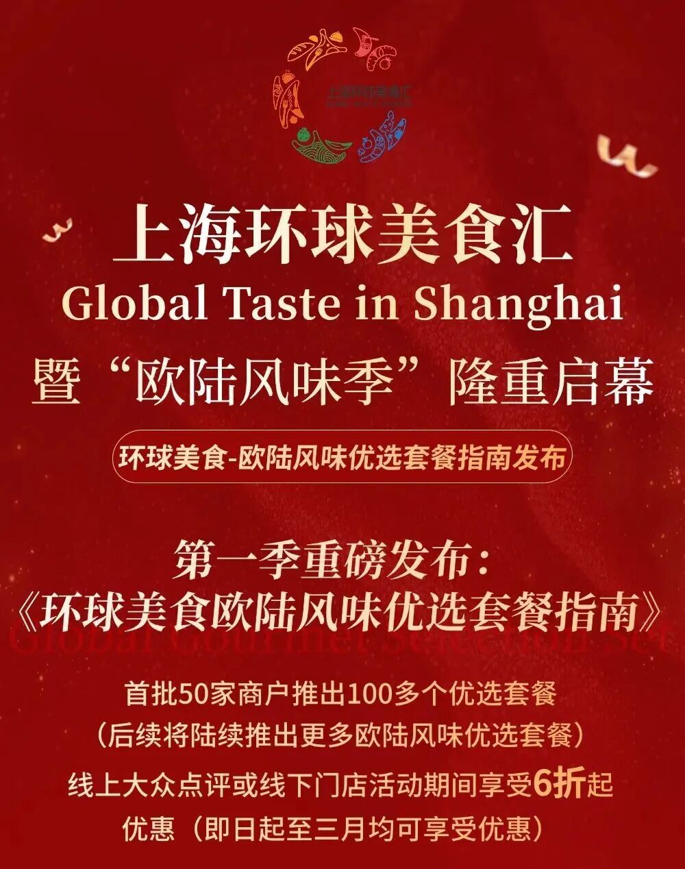市商务委介绍,上海环球美食汇暨“欧陆风味季”隆重启幕!第一季由上海市商业联合会环球美食专委会联合上海交通广播-行味发布:《环球美食欧陆风味优选套餐指南》,首批50家商户推出100多个优选套餐(后续全市各区将陆续推出更多欧陆风味优选套餐)。