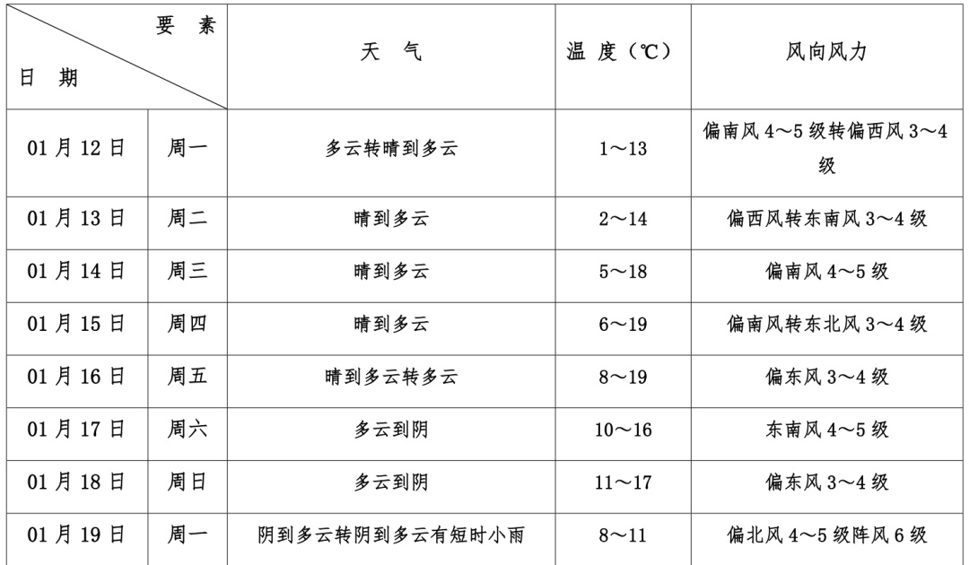 据最新气象资料分析:未来一周本区以晴好天气为主,气温逐渐回升,昼夜温差较大。19日起,受冷空气影响,有一次大风降温雨雪过程。