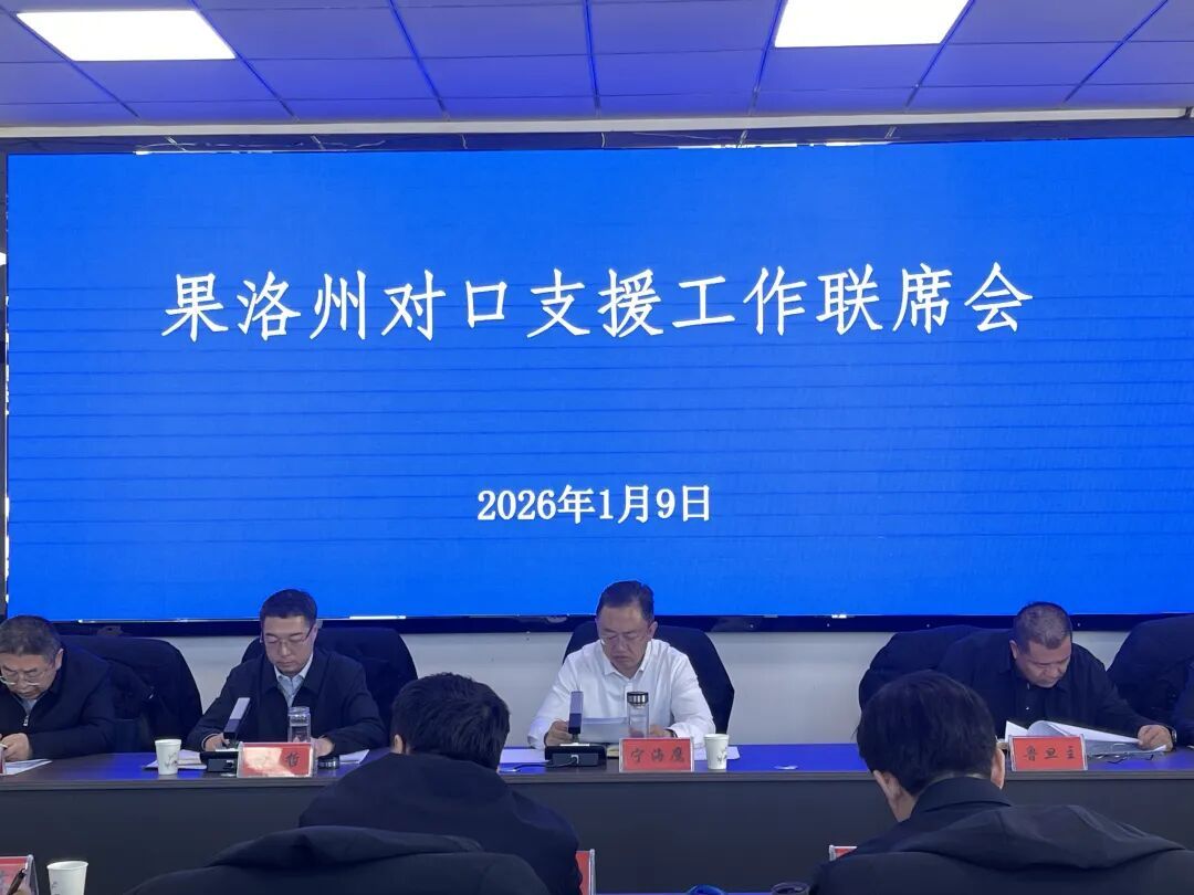 1月9日,2025年度果洛州对口支援工作联席会议召开。果洛州委书记宁海鹰出席并讲话,上海市援青干部联络组组长、果洛州委副书记、副州长田哲主持会议。州发改委主任罗宏霖汇报了2025年上海市对口支援果洛工作推进情况及2026年对口支援项目计划编制详情。州相关领导、州直相关部门及各县负责同志围绕2026年对口支援项目计划编制工作深入交流、建言献策。