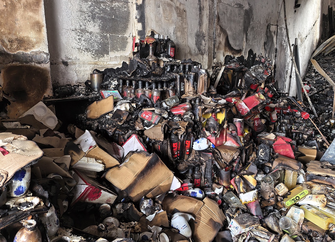 此次火灾共烧毁数十箱酒水饮料
