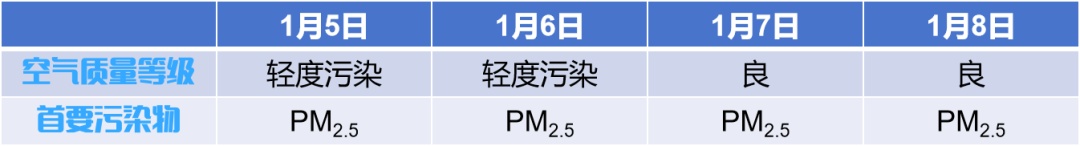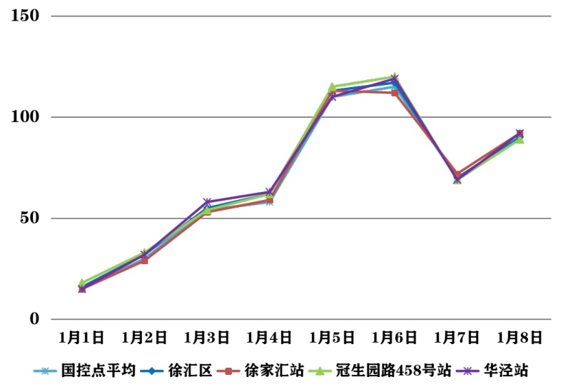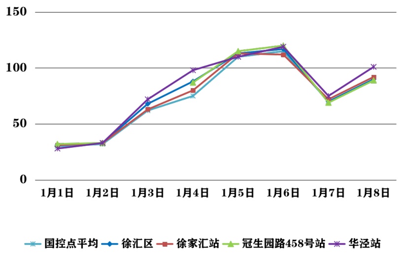 2026年1月1日—1月8日,徐汇区大气环境质量报告如下所示: