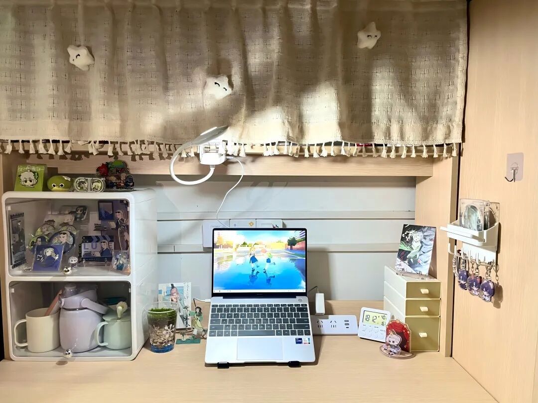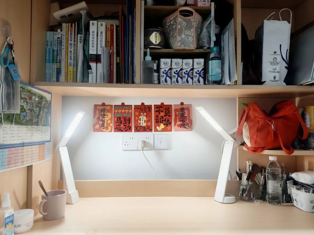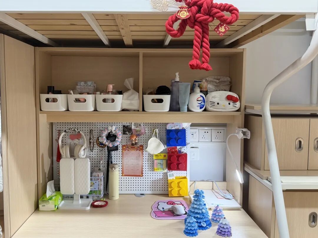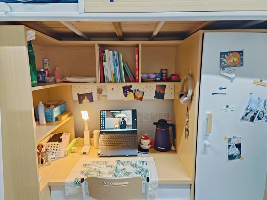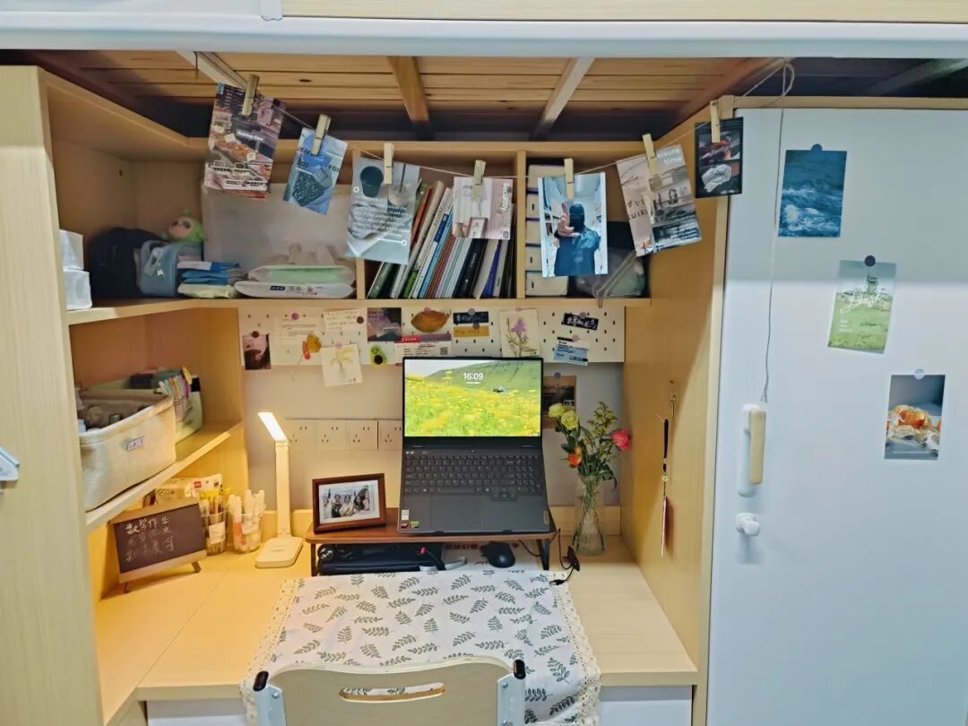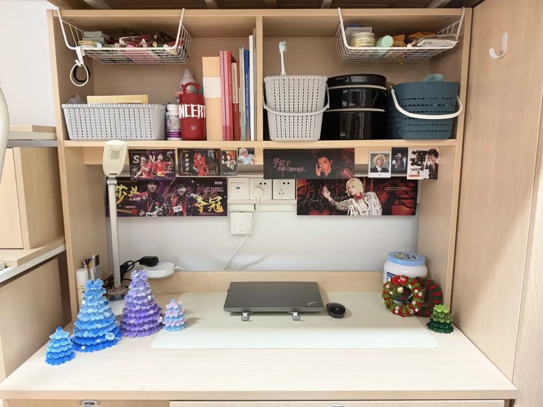 最触动的是看着空架子一点点被帘子、灯光和手作物填满的过程。我们一起挑选布料、拼豆、整理收纳,原本单调的宿舍渐渐有了温度。现在,拉上帘子就能沉浸在自己的小世界里,打开灯又是共享的温暖光景。这种“集体中的独处”让我们既能专注学业,又能随时感受到彼此的陪伴。原来,用心打理的不仅是空间,更是读研时光里一份可贵的安宁。