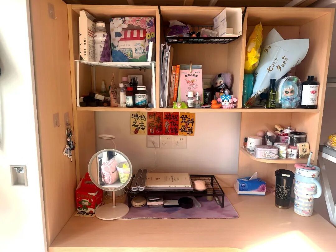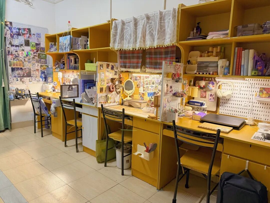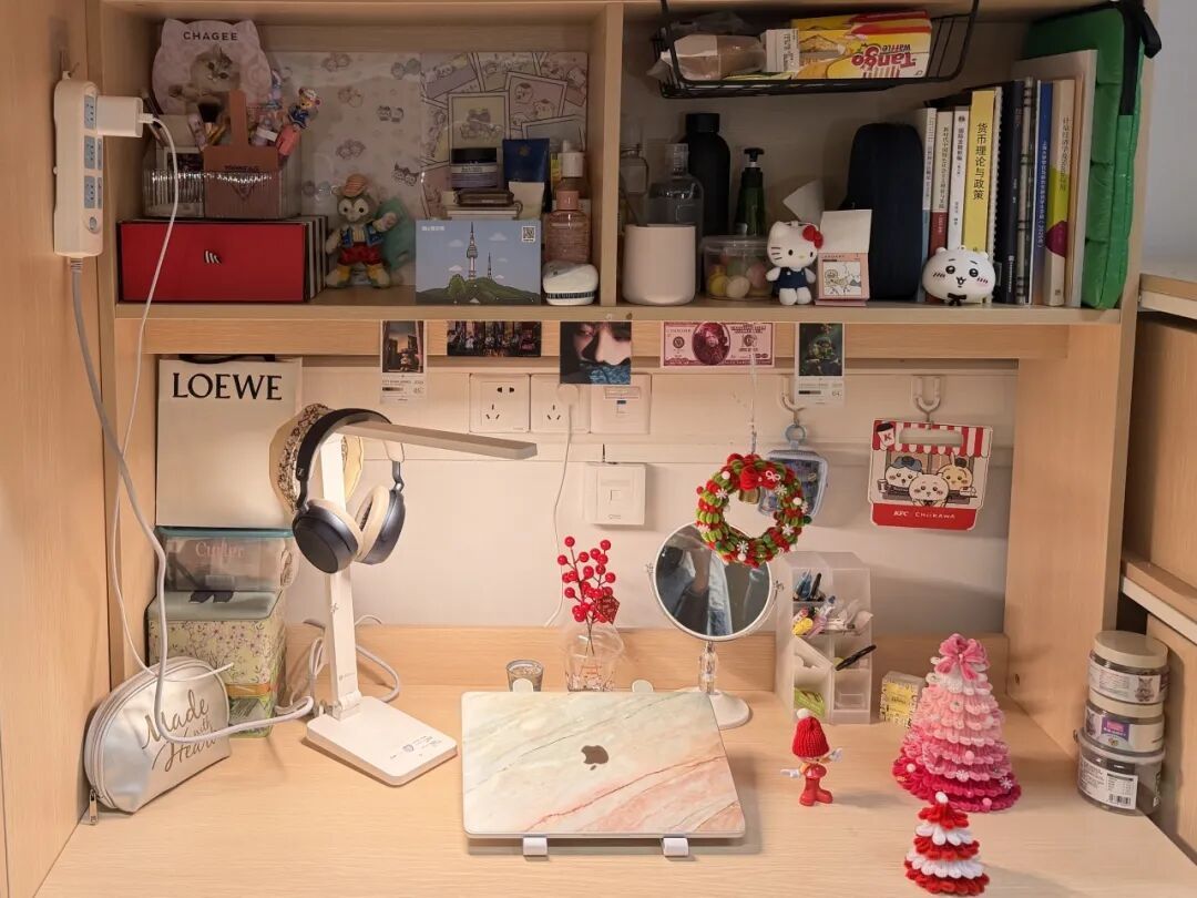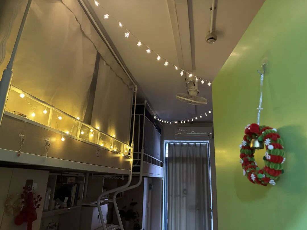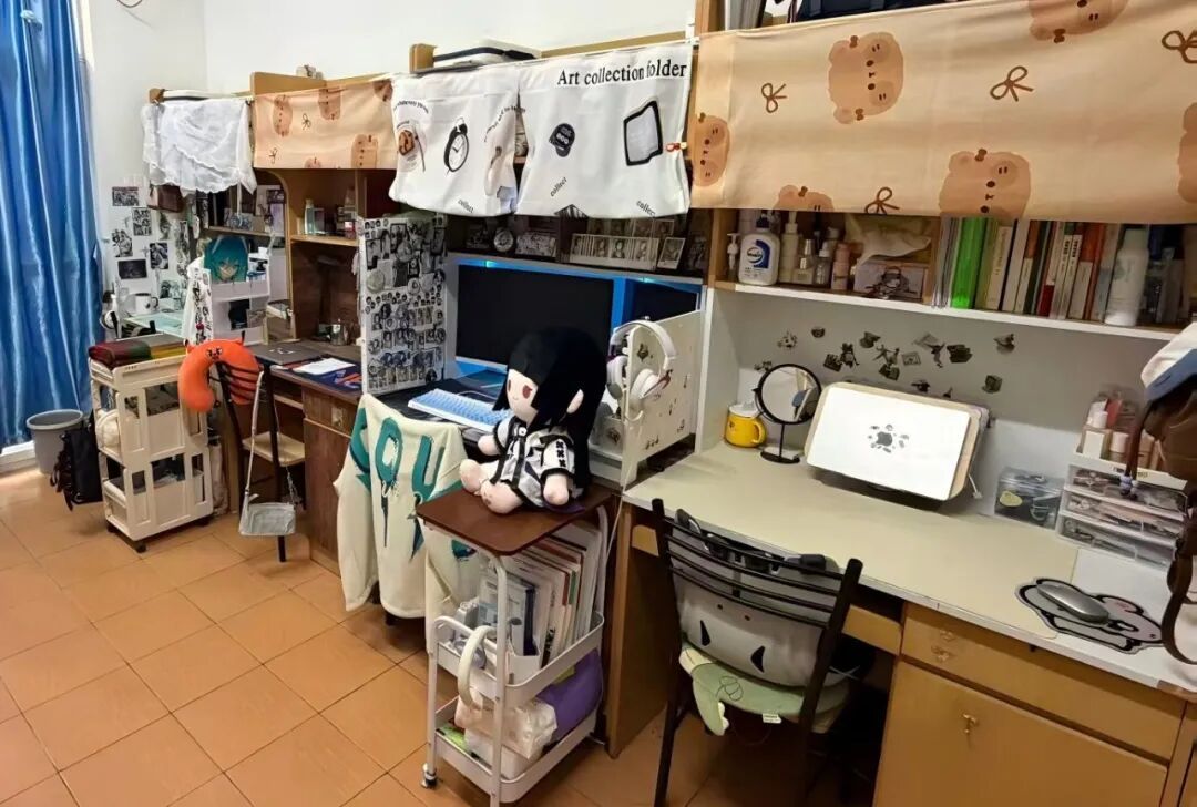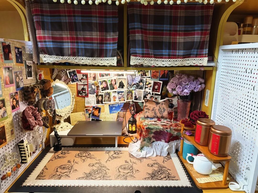 最触动的是看着空架子一点点被帘子、灯光和手作物填满的过程。我们一起挑选布料、拼豆、整理收纳,原本单调的宿舍渐渐有了温度。现在,拉上帘子就能沉浸在自己的小世界里,打开灯又是共享的温暖光景。这种“集体中的独处”让我们既能专注学业,又能随时感受到彼此的陪伴。原来,用心打理的不仅是空间,更是读研时光里一份可贵的安宁。