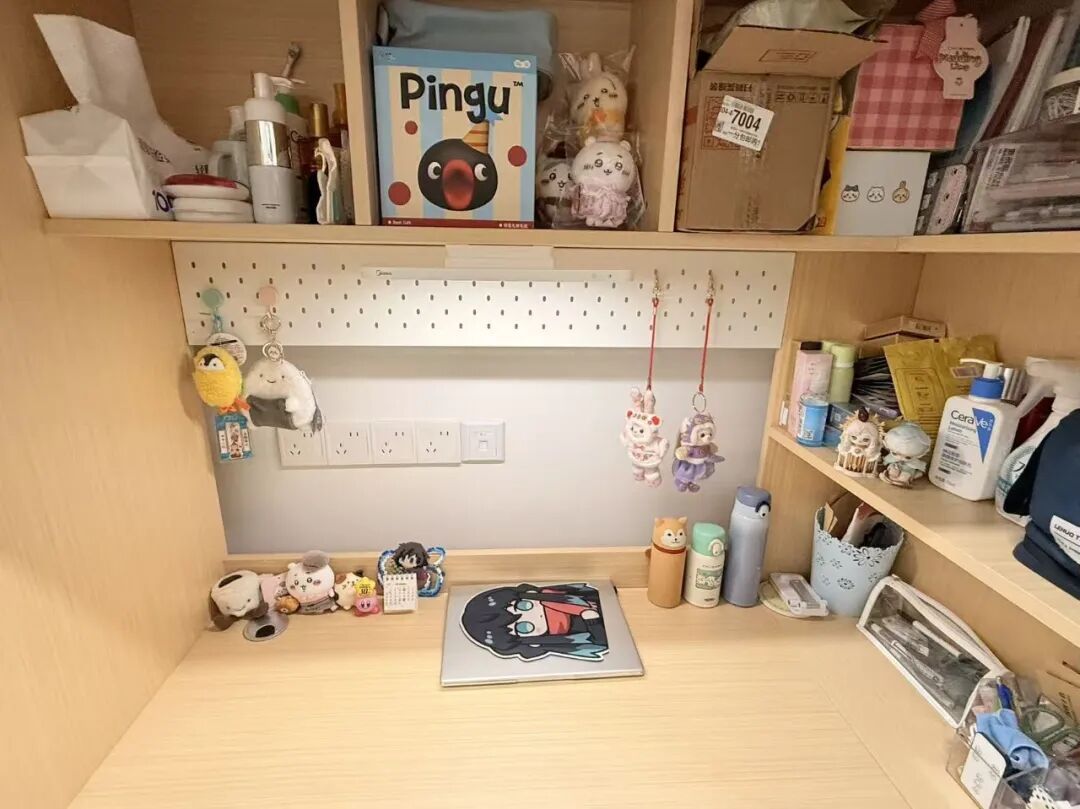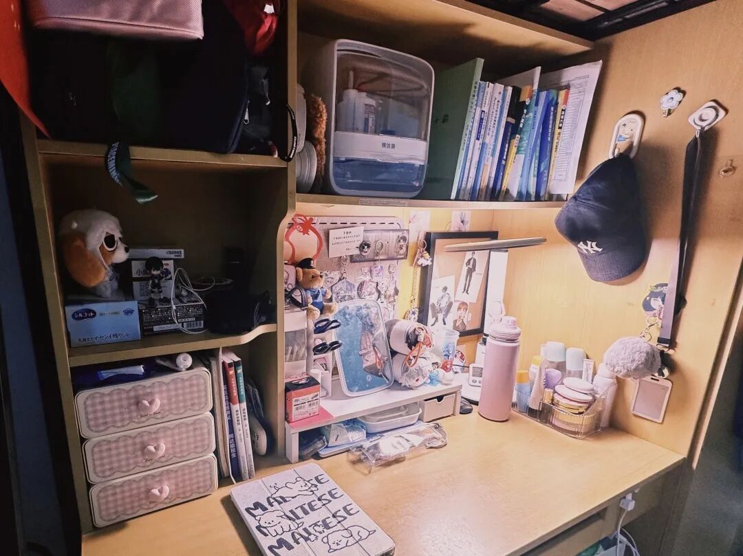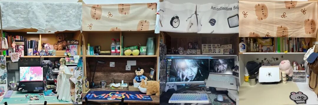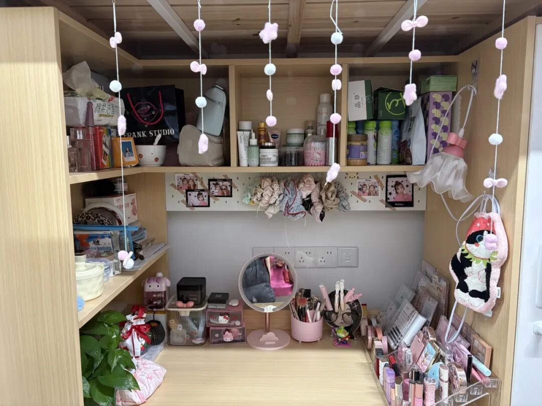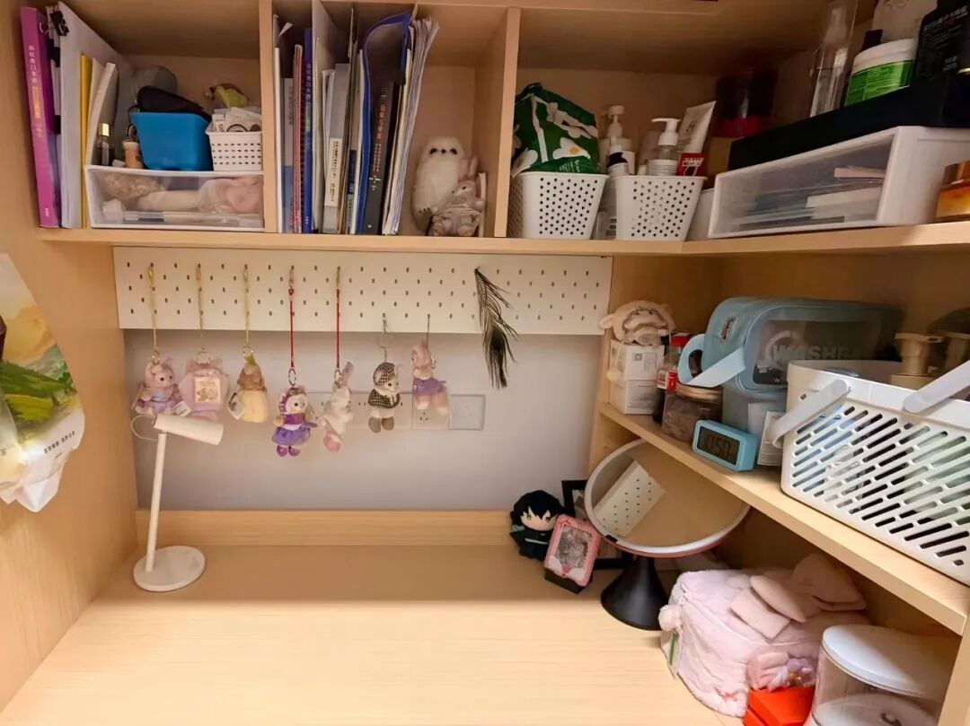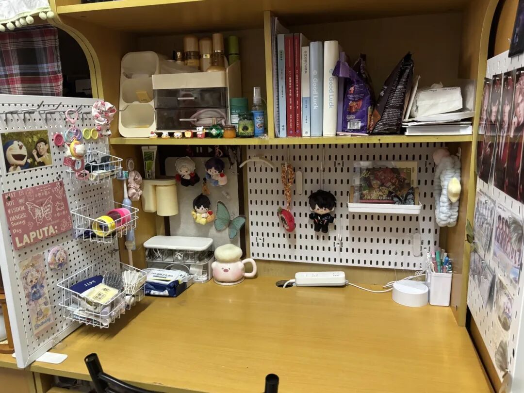 最触动的是看着空架子一点点被帘子、灯光和手作物填满的过程。我们一起挑选布料、拼豆、整理收纳,原本单调的宿舍渐渐有了温度。现在,拉上帘子就能沉浸在自己的小世界里,打开灯又是共享的温暖光景。这种“集体中的独处”让我们既能专注学业,又能随时感受到彼此的陪伴。原来,用心打理的不仅是空间,更是读研时光里一份可贵的安宁。