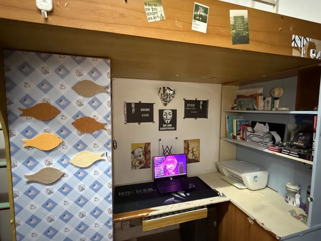 通过这次布置,我们真正理解了“家”的意义。每个人的爱好都被尊重与欣赏,钢琴声、小号曲与桌游笑声常交织在一起。共享打印机、绿植和置物架,让我们在日常互助中越发默契。这次美化不只是装饰房间,更是将四个不同的世界,温柔地连接成了一个共同热爱的生活。我们在此收获的不只是舒适,更是友谊与归属。