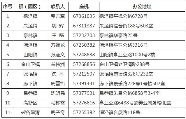 2.各镇(园区)专管员咨询方式