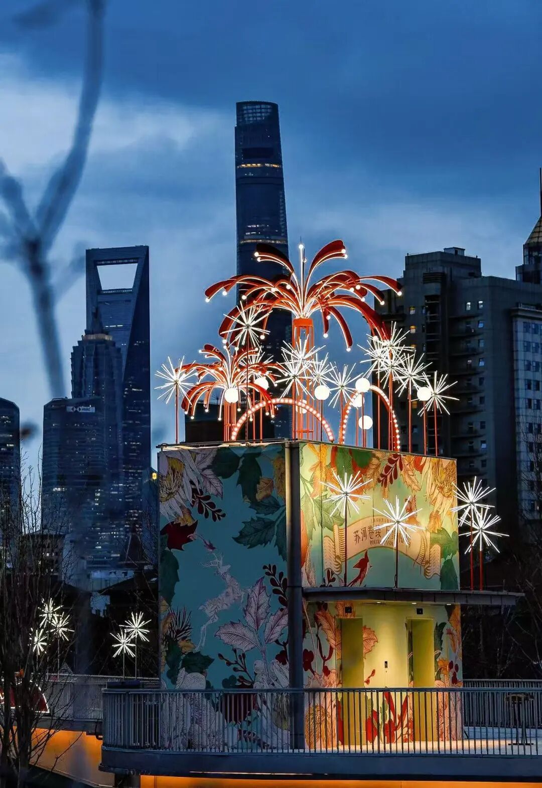 元旦期间,慎余里的烟花造型装置增添了节日氛围。
