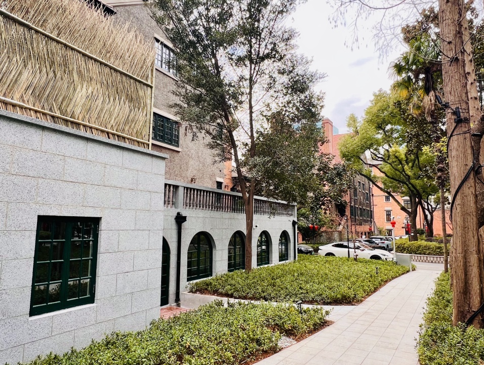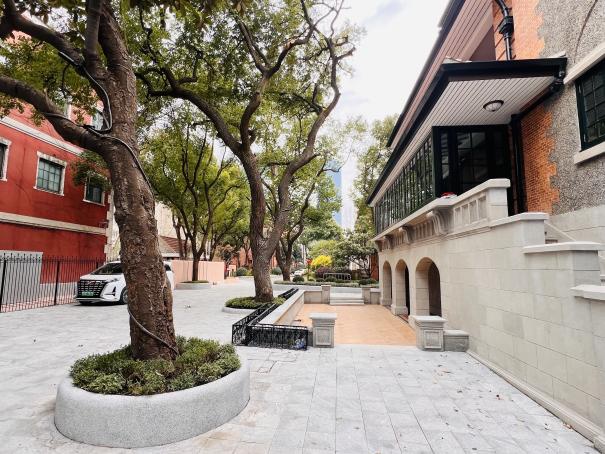 愚园路1294号建筑及周边地坪也完成了整体升级。改造秉持风貌协调原则,确保建筑铺装与愚园路历史风貌区的整体格调一脉相承,维系了街区连续、完整的历史场景与空间肌理。