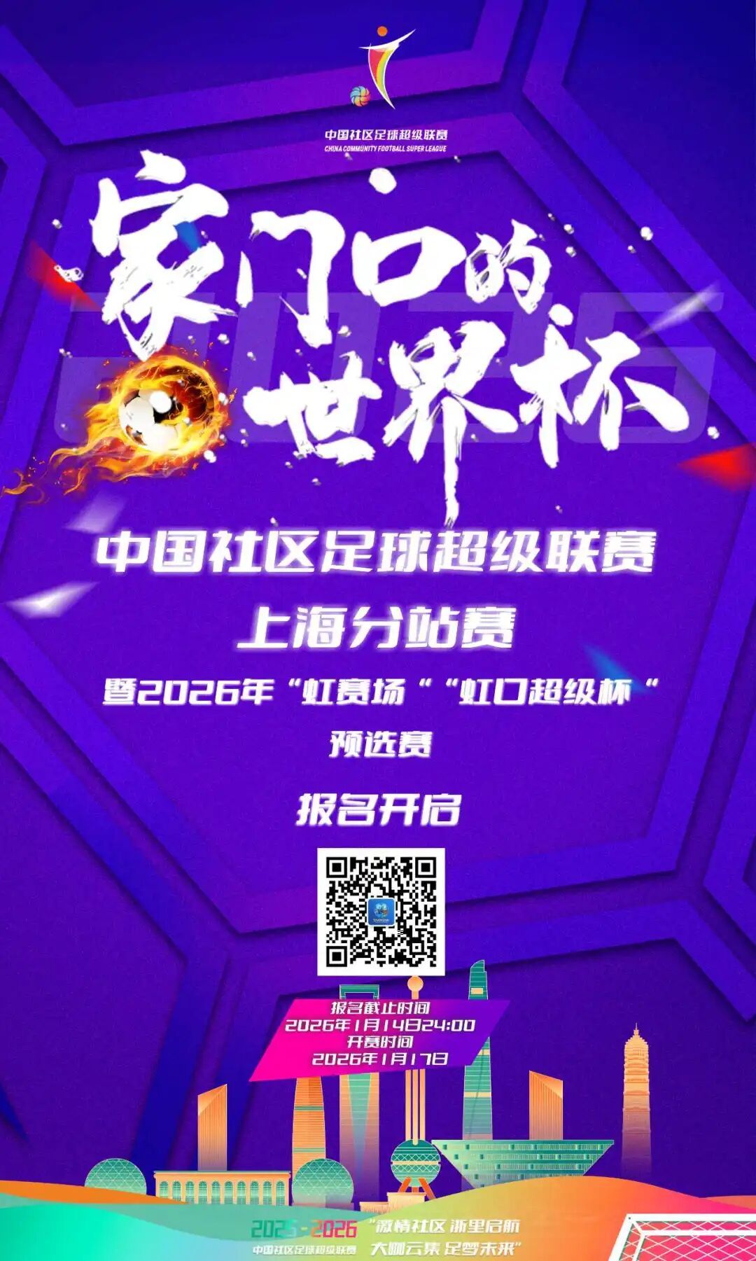 虹口足球场介绍,2025-2026年中国社区足球超级联赛(简称“社超”)上海分站赛将与2026年“虹赛场·虹口超级杯”实现赛事贯,预选赛报名通道目前已正式开启,欢迎广大足球爱好者踊跃报名参与。