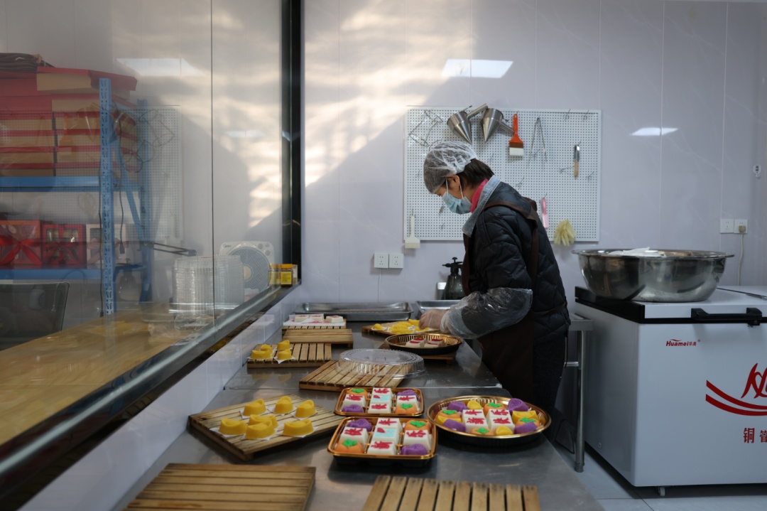 而位于金山卫镇卫通村的濮记方糕工厂店,近日也推出了马年新春款特色礼盒,随着春节临近,销量与日俱增。