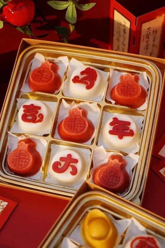 此次新推出的春节款方糕,有“马年大吉”“马上暴富”“财神偏爱”等不同主题,口味除传统豆沙、枣泥馅料外,还增添了当季草莓等水果馅料,图案造型上也融入了剪纸版的醒狮、灯笼、中国结、福袋、锦鲤等元素,颇受市民喜爱。