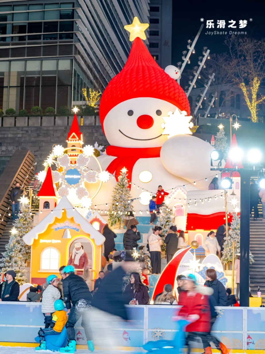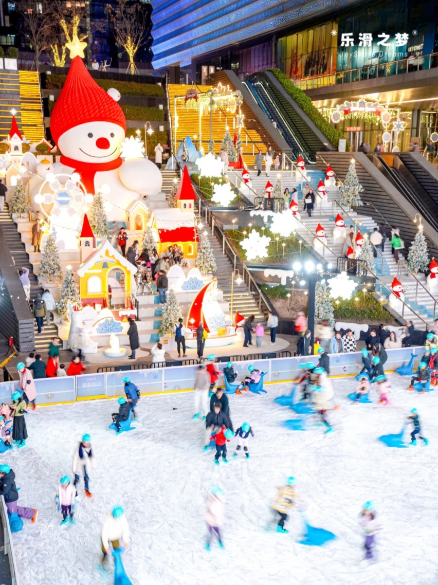 陆家嘴中心L+Mall下沉广场变身超真实雪上乐园。摩登楼群与红帽雪人碰撞出别样火花。