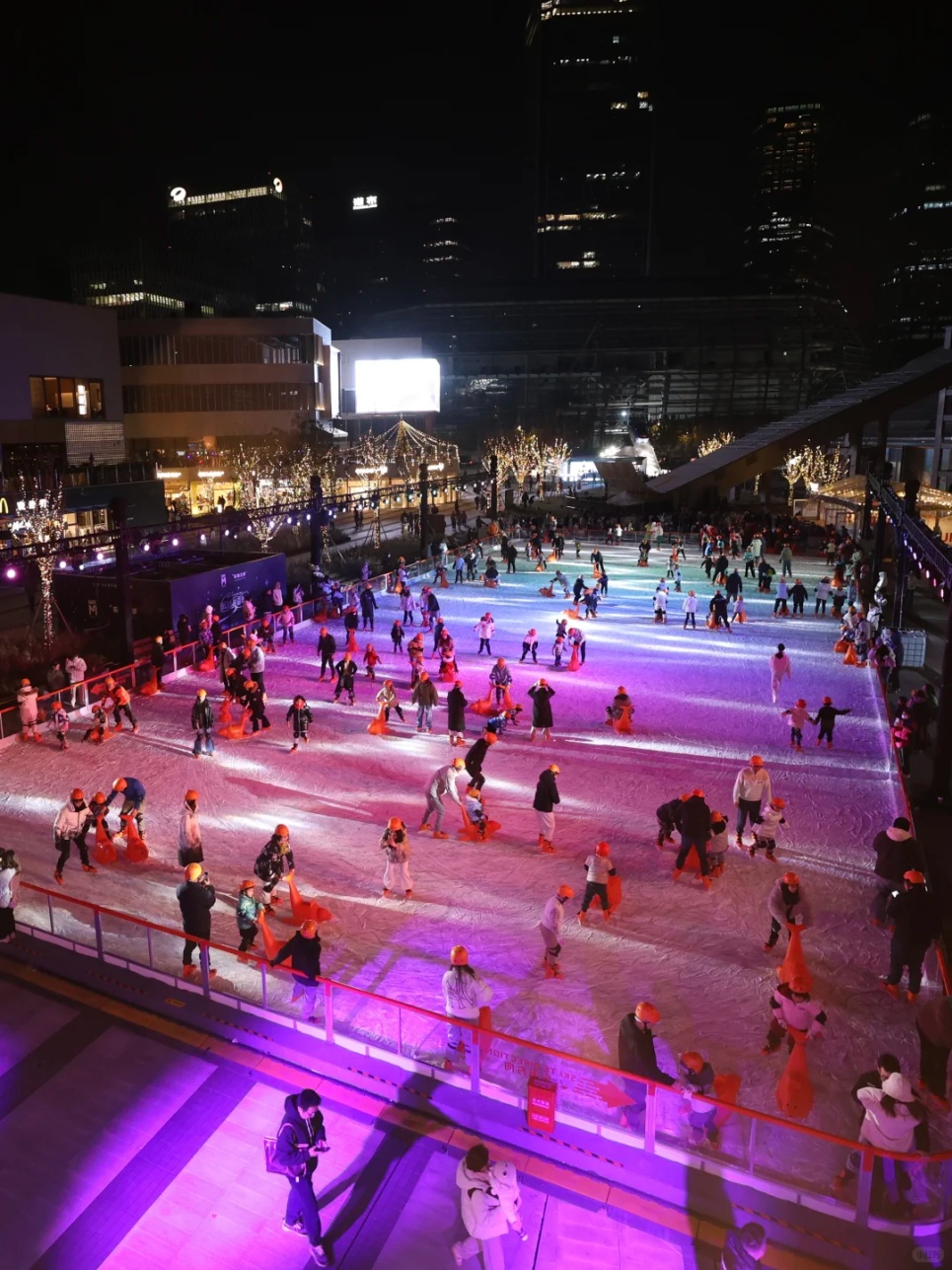 600㎡专业冰面空降长宁来福士中央草坪,平整如镜,在灯光映衬下,梦幻感直逼动画大片,让你在舒适环境中安心畅滑,尽情驰骋。