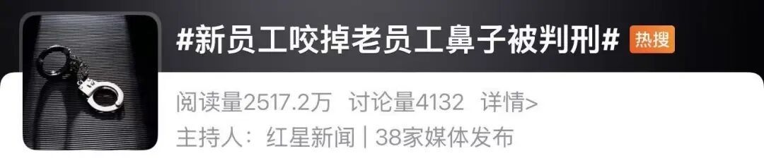 “新员工咬掉老员工鼻子被判刑”